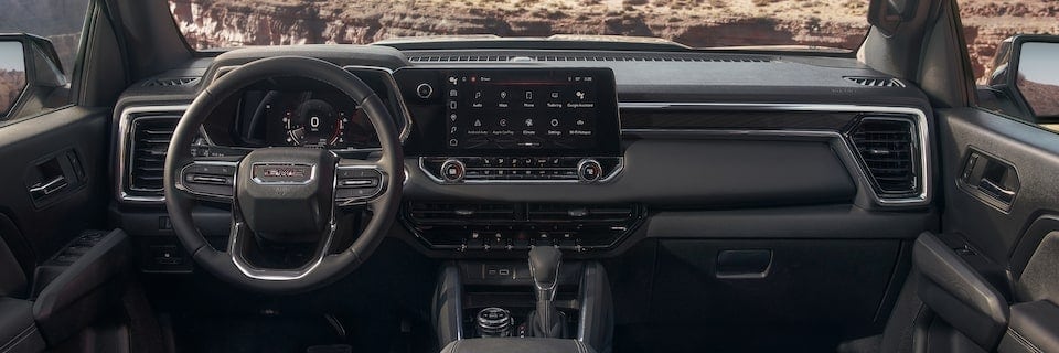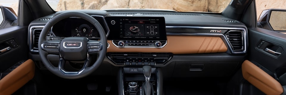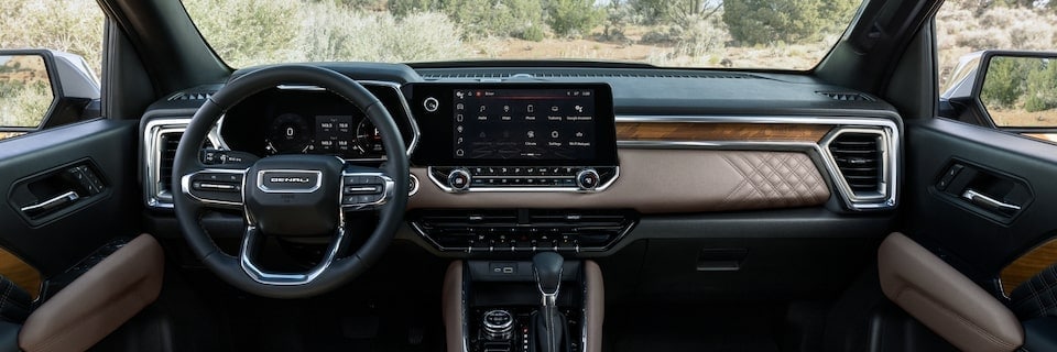 Hit the trails in first-class comfort with uncompromisingly premium amenities in Canyon Denali's all-new exclusive Jet Black interior with Teak accents.