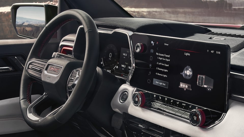 Upgrade your overland adventures in Canyon AT4X's Obsidian Rush interior with Ceramic White accents.