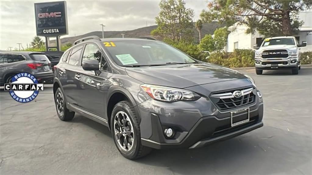 Clean CARFAX. AWD Magnetite Gray Metallic Premium 2.0L DOHC 4x4 / AWD / Four Wheel Drive / 4WD, Back up Camera, Bluetooth / Hands Free, 4D Sport Utility, AWD, Magnetite Gray Metallic, 4-Wheel Disc Brakes, 6 Speakers, ABS brakes, Air Conditioning, AM/FM radio: SiriusXM, Anti-whiplash front head restraints, Automatic temperature control, CD player, Dual front impact airbags, Dual front side impact airbags, Emergency communication system: STARLINK Safety and Security (Subscription Required), EyeSight System, Four wheel independent suspension, Front anti-roll bar, High Grade Combination Meter w/Color LCD Display, Illuminated Storage Tray in Front Center Console, Knee airbag, Leather-Wrapped Shift Lever Handle, Low tire pressure warning, Occupant sensing airbag, Overhead airbag, Overhead Console Shower Light, Power steering, Power windows, Radio data system, Radio: Subaru STARLINK 6.5 Multimedia Plus System, Rear anti-roll bar, Rear Seat Reminder, Rear window defroster, Remote keyless entry, Speed-sensing steering, Standard Model (CVT), Steering wheel mounted audio controls, Subaru STARLINK Smartphone Integration, Tire Pressure Monitoring System, Traction control. 28/33 City/Highway MPG Odometer is 2693 miles below market average!